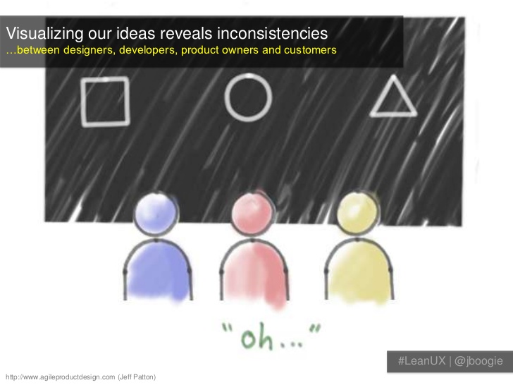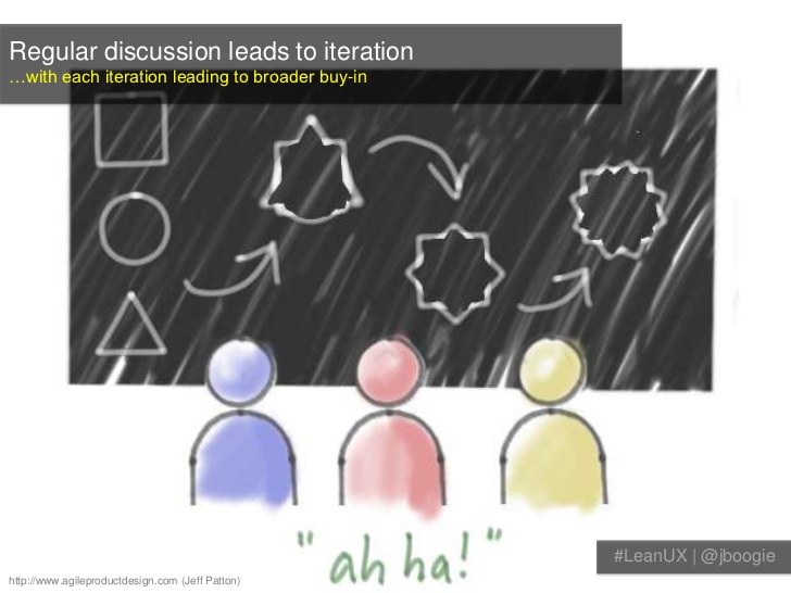 In aggiunta ai "pilastri" precedenti, la Lean UX pone meno enfasi nei "DELIVERABLES" e si focalizza maggiormente sulla comprensione condivisa dell'esperienza utente che si desidera fornire